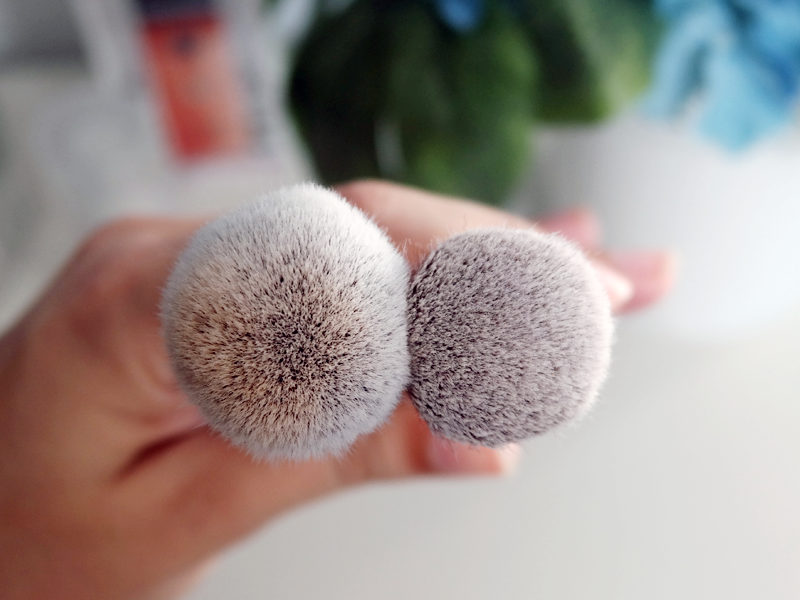 As you can see, although both have round tops, they aren't exactly the same. Zoeva's is more flexible and more "open" when compared to F82 which is more dense. Does this make a difference? It does.