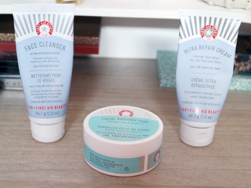 Today's post will be my impression/review on the Try-out set from First Aid Beauty I got a few months ago. I've been quite curious about FAB for a while since it's not only raved by many American and Canadian Bloggers, but it's also raved by Caroline Hirons. And we all know that if the Queen of skin care recommendations says something is nice - in this case their pads - I will try it out as soon as can. Or if my bank account allows it.  Since I wasn't only curious about the pads, I thought this kit would be a nice acquisition. And it was because now I now that I can't live without two of these products but that I really hate one of them.