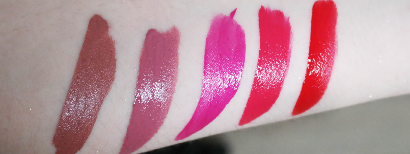( from left to right : 02 Classic Beige ; 13 Marvelous Mauve ; 09 Forever Fuchsia ; 03 Strawberry Kissed ; 01 Always Red )